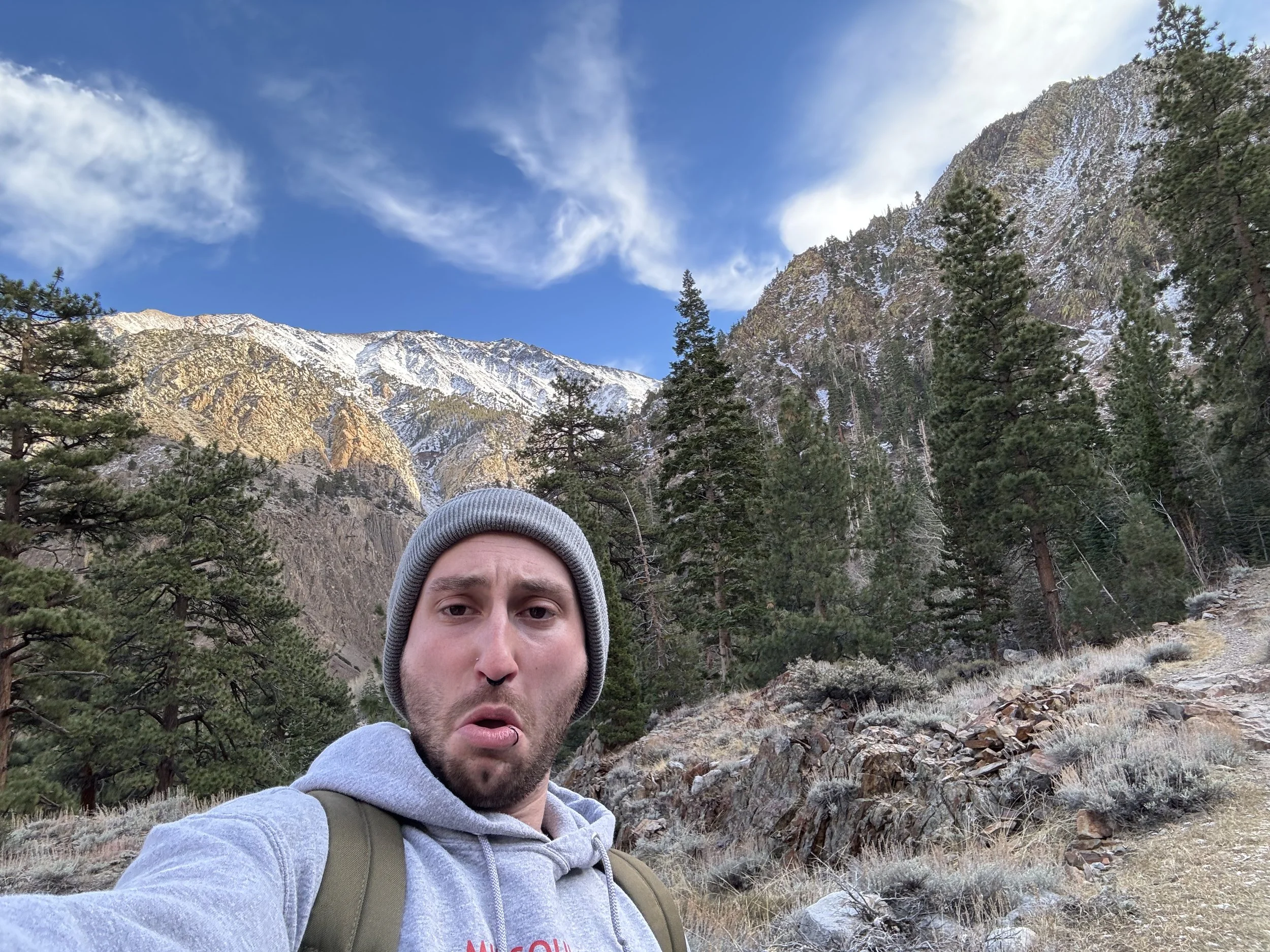 here’s a current picture of me. i grew up in the eastern sierra nevada mountain range. i am a poet, director, performer, and fighter. i am the bar manager at the newport theater. in 2023, I co-founded do process and giggle hour. i do muay thai and frequent comedy/variety shows around my current home, the city of chicago. i spend my free time sleeping and lounging around with friends.